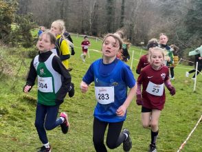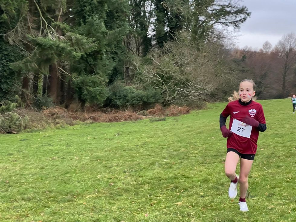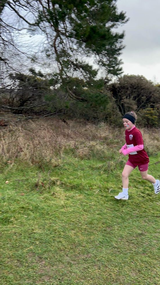 In the Under 13 girls race, Logan was joined by ex-pupil Charlotte, her cross country teammate from last year. Like Will they had the longer distance to complete but both set willfully about their task from the start. Logan had been ill this week and so it wouldn't have been unexpected had she tired over the longer distance. But this was not the case as she applied herself superbly well, catching one girl after another as some paid the price for having started too quickly. Logan climbed the last hill powerfully to finish strongly, finally looked tired as she crossed the line. Not far behind her, Charlotte suffered a fall into her first few strides of the race. Her fall was captured on video and showed a somewhat graceful recovery as she got back to her feet and steadily made her way back to the pack. Charlotte's determination is highlighted by a habit that has crept in over the past year. All we'll say is that she clearly gives her all in what is always an impressive performance. She finished only a handful of places behind Logan despite her fall.